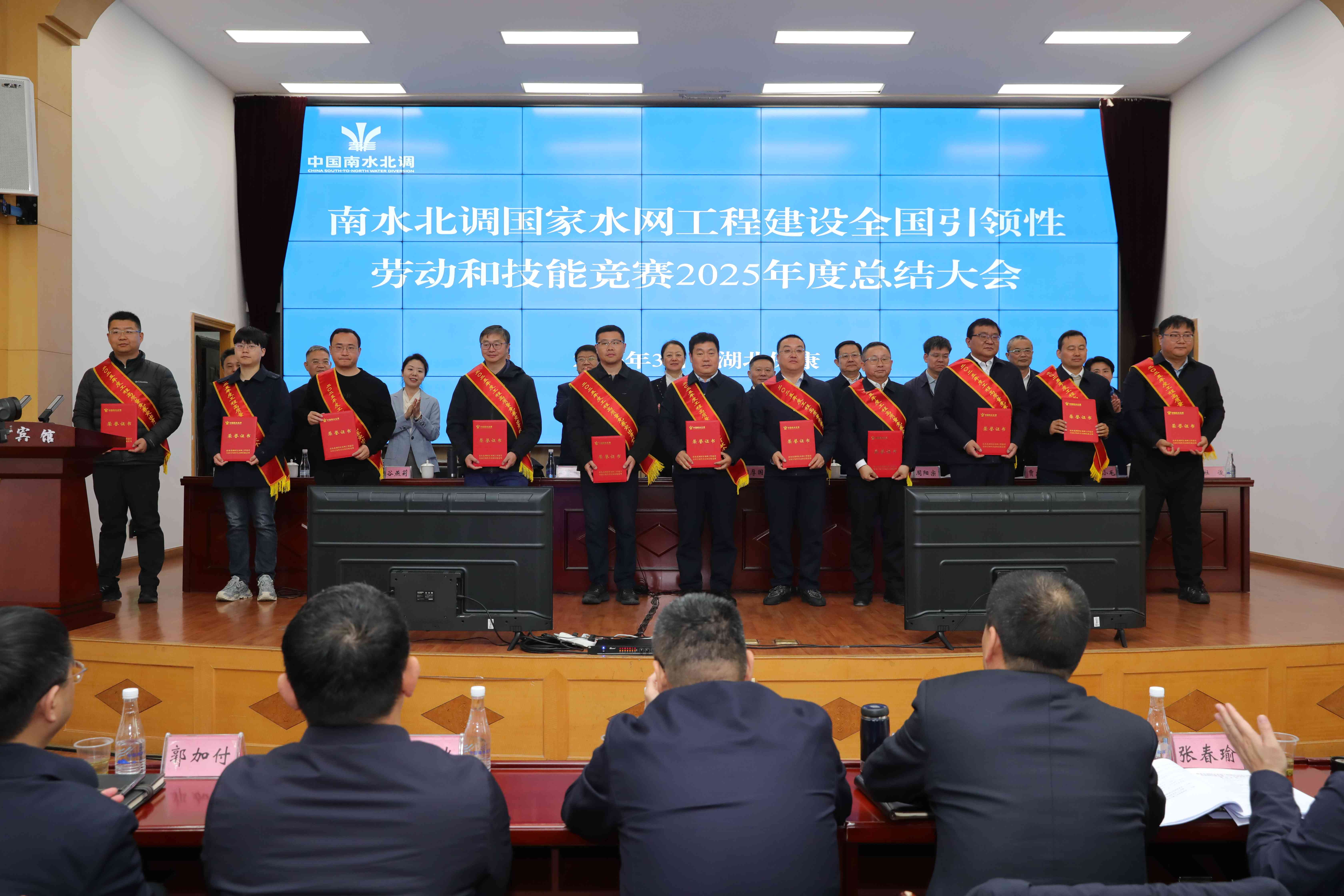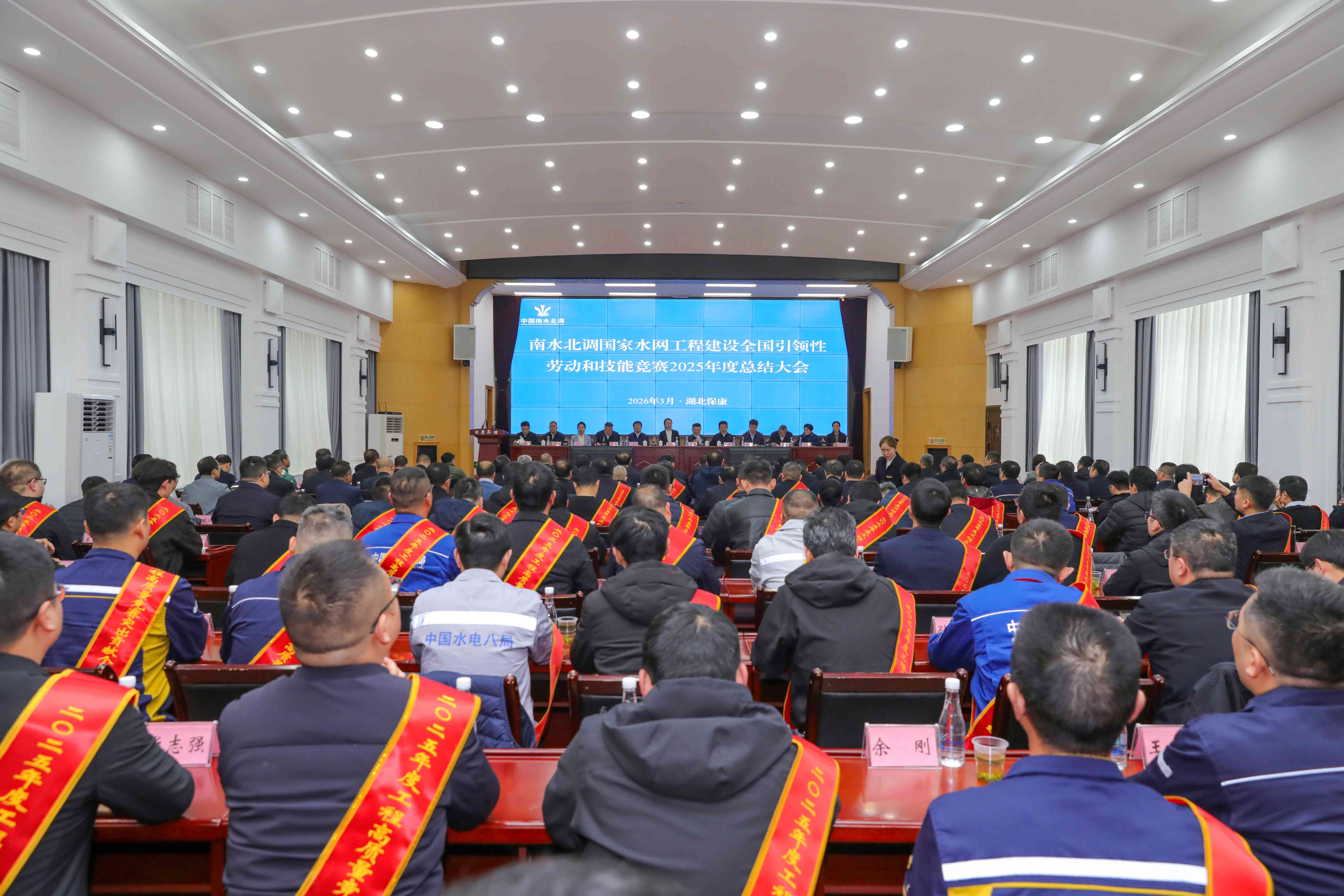 本站訊?3月20日,由全國總工會中國農(nóng)林水利氣象工會、中國南水北調(diào)集團(tuán)、湖北省總工會聯(lián)合主辦的南水北調(diào)國家水網(wǎng)工程建設(shè)全國引領(lǐng)性勞動和技能競賽2025年度總結(jié)大會在保康舉行,全面總結(jié)2025年度競賽成果,表彰標(biāo)桿典范,凝聚攻堅(jiān)合力。中國農(nóng)林水利氣象工會分黨組成員、副主席姜曉捷,中國南水北調(diào)集團(tuán)黨組成員、副總經(jīng)理周厚國,湖北省總工會黨組成員、副主席馮家欣出席會議并講話。