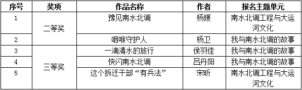 首屆“南水泱泱·運河悠悠”——弘揚南水北調文化短視頻征集活動獲獎作品名單
