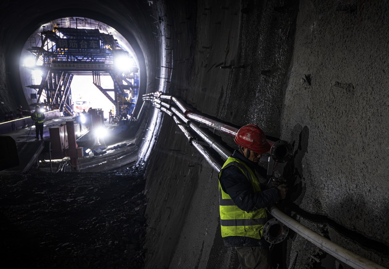 1月8日,在湖北省襄陽市保康縣馬良鎮拍攝的引江補漢工程輸水隧洞8號平洞施工現場。 新華社記者 肖藝九 攝